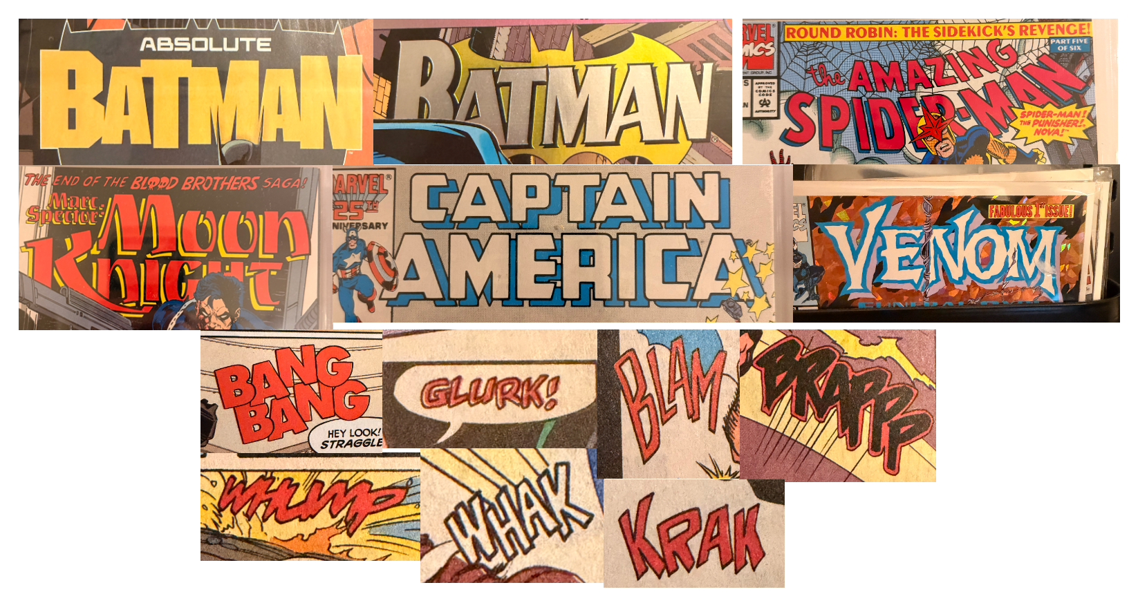 The logo design is heavily influenced by the title designs found on the front page of comics and the onomatopoeia typography designs within the comic books, however modernising it slightly to lean away from that generic comic book style, with tightly kerning it together, overlapping and creating that negative space and creating it into an approachable logo for new customers.